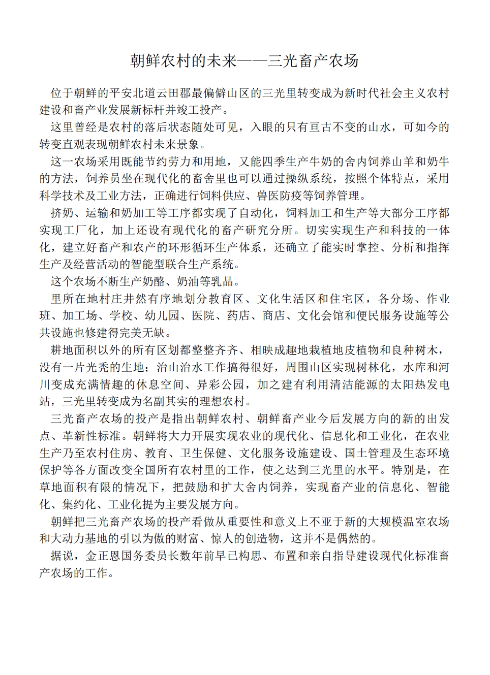 朝鲜农村的未来——三光畜产农场