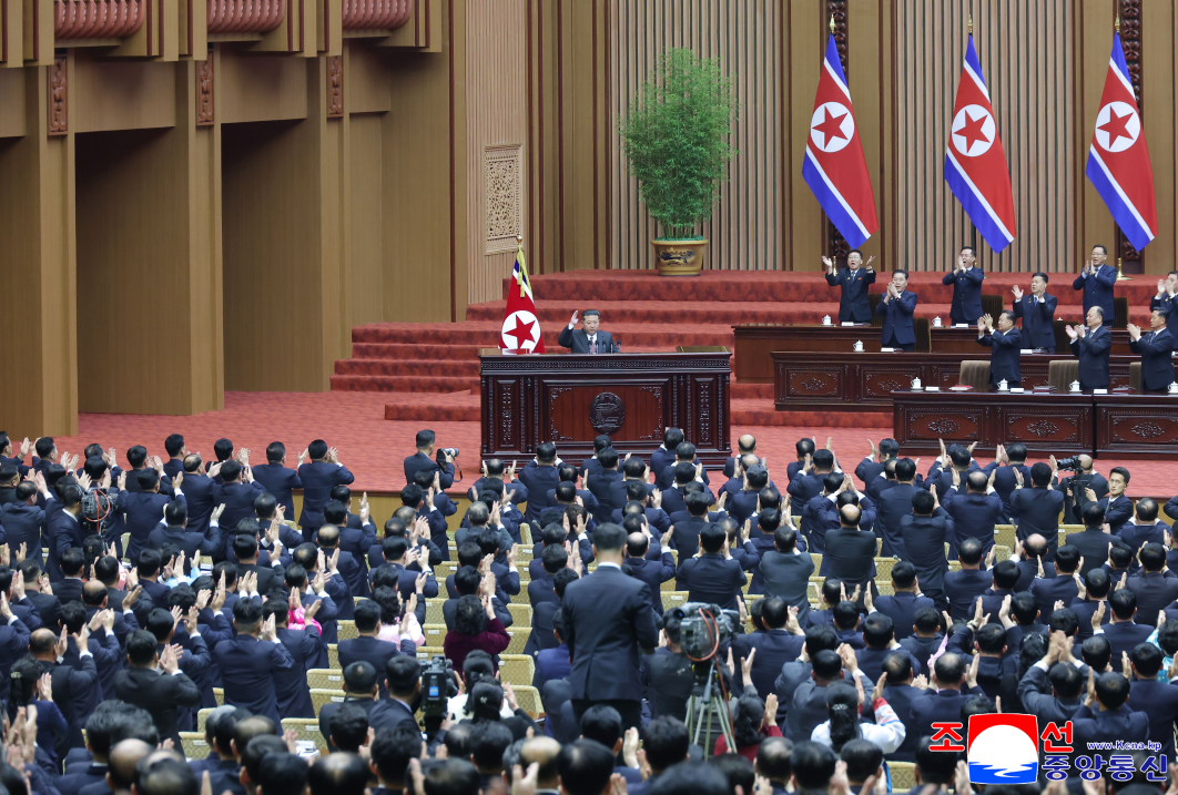 敬爱的金正恩同志在朝鲜民主主义人民共和国第十五届最高人民会议第一次会议上发表施政演说