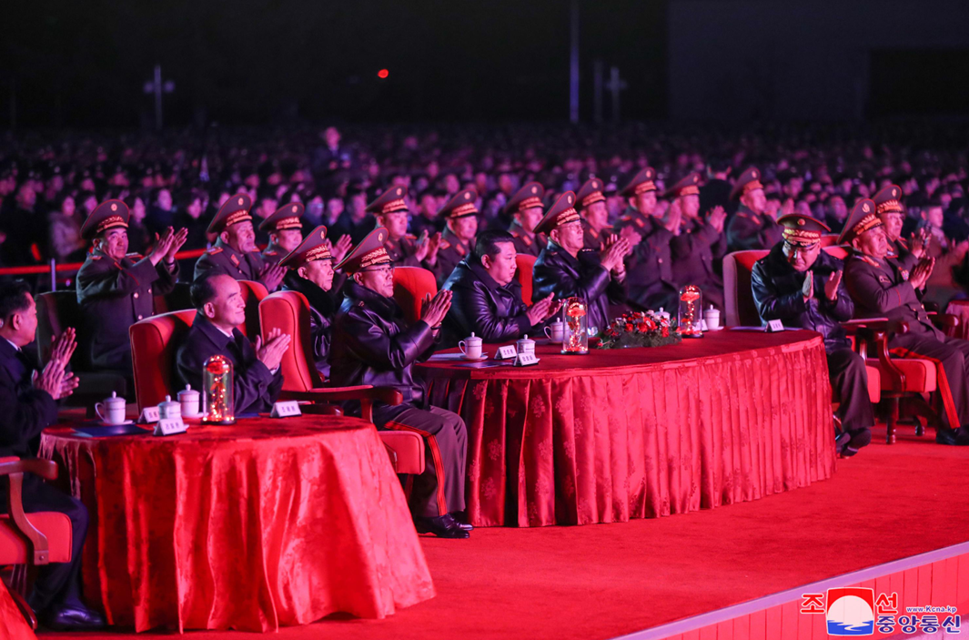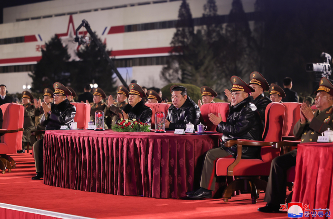 敬爱的金正恩同志观摩大功率碳纤维固体燃料发动机地上点火试验