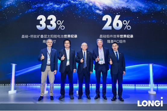 隆基双破效率世界纪录:商用尺寸叠层电池达33%,晶硅组件攀至26%