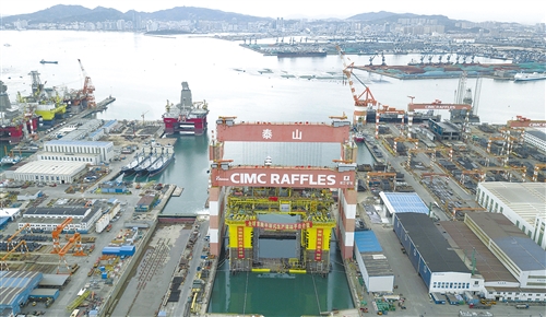 鸟瞰储油平台(10月29日摄,无人机照片)。10月29日,我国自主建造的半潜式储油平台主体工程顺…