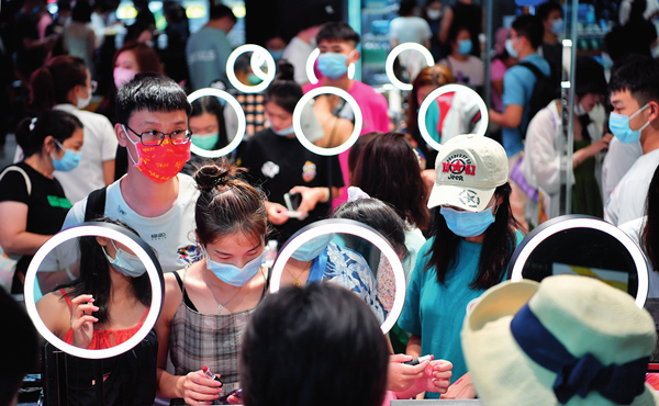 10月5日,游客在三亚国际免税城购物郭程摄/本刊◇国庆中秋双节8天,海口海关监管的海南离岛免税购…