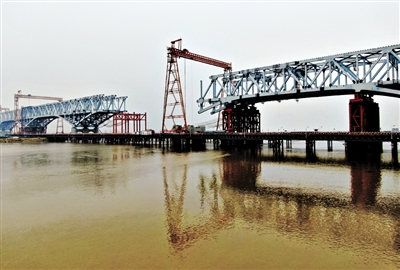 9月16日,施工人员在转体作业中监测。当日,由中铁四局承建的黄(冈)黄(梅)铁路范家岗特大桥跨京…