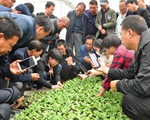 甘肃农业职业技术学院授课教师在和平农场现场教授学员蔬菜嫁接。甘肃农业职业技术学院学员在记录课堂笔…