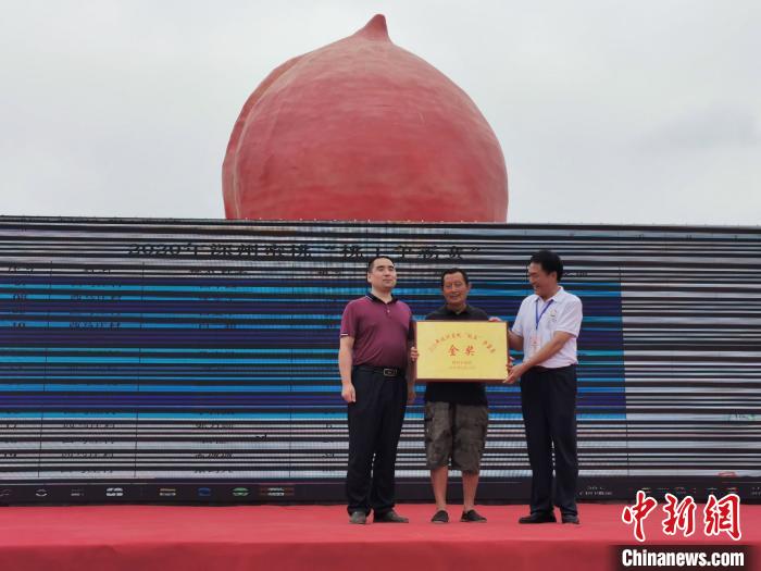“头魁”果农范小全领奖现场。王鹏摄中新网衡水8月23日电(崔志平王鹏)23日,2020年第八届深…