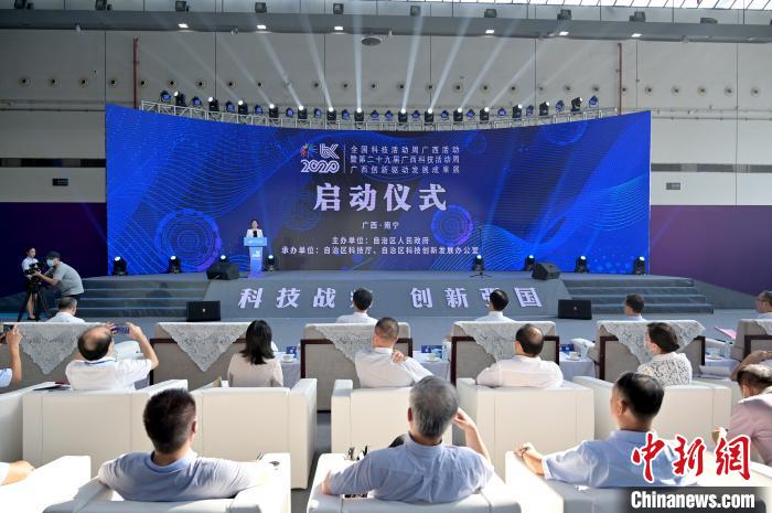 图为2020年全国科技活动周广西活动暨第二十九届广西科技活动周·广西创新驱动发展成果展启动仪式现…