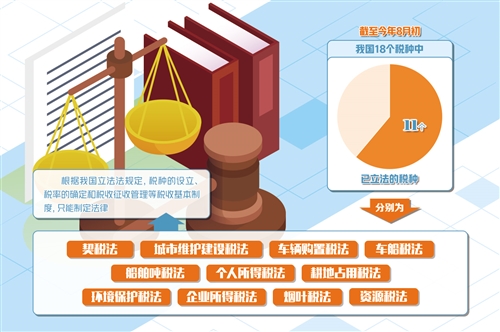 截至今年8月初,我国18个税种中已有11个税种立法——税收法定进程步入关键冲刺期