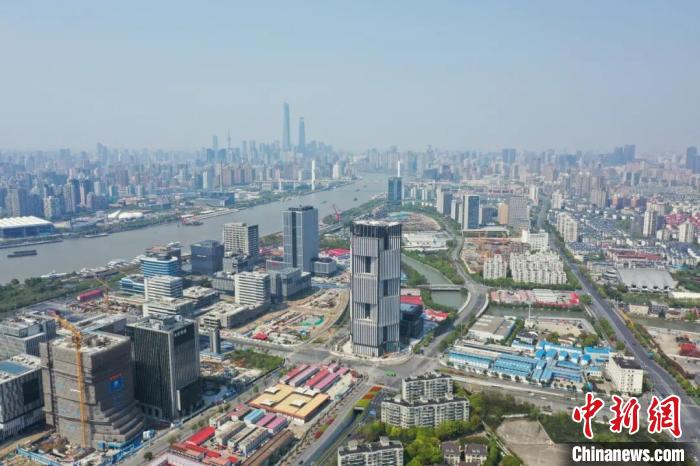 航拍正在建设中的新开发银行总部大楼。上海住房城乡建设管理供图中新网上海8月2日电(记者殷立勤)新…