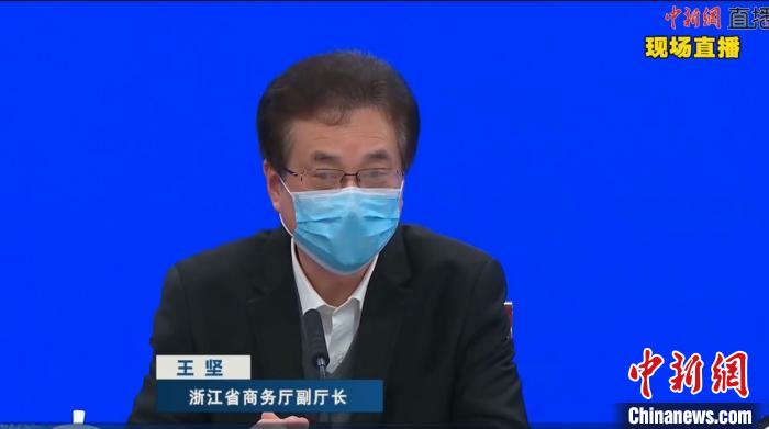 图为浙江省商务厅副厅长王坚。视频截图(抗击新冠肺炎)浙江5726家出口额千万美金以上企业全面复工…