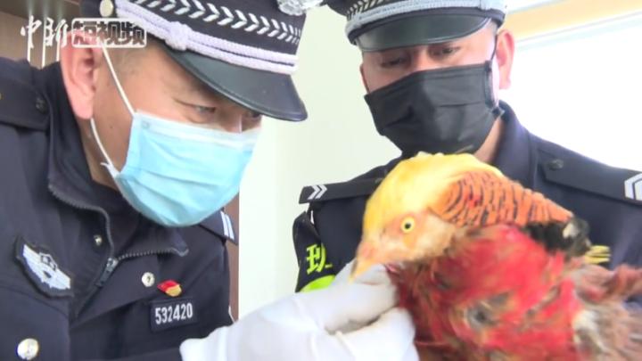 云南红河:红腹锦鸡误入居民区 森警及时救助