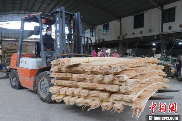 连日来,江西省上饶市广信区华坛山镇富邦毛竹专业合作社扶贫车间力热火朝天。陈琳摄中新网南昌2月28…