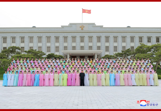 金正恩同志同朝鲜人民军军属文艺小组演出参加者合影