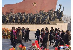 朝中社平壤1月1日电充满希望的新年的第一天早晨,各地干部、劳动群众和人民军官兵前往伟大领袖金日成…