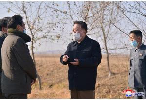 崔龙海实地考察甑山郡农业生产和治山治水情况