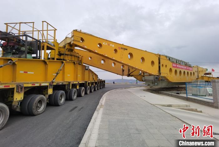 图为在青海省西宁市组装试验完成的±800千伏特高压青南换流站首台高端换流变压器运抵特高压青南换流…