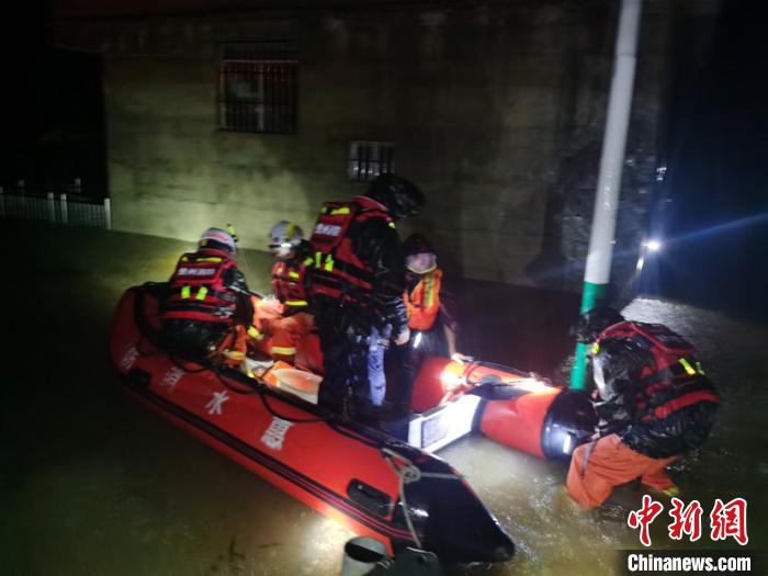 图为9月16日晚,贵州惠水县持续暴雨致民众被困,消防员展开营救。赵益民摄中新网贵阳9月17日电(…
