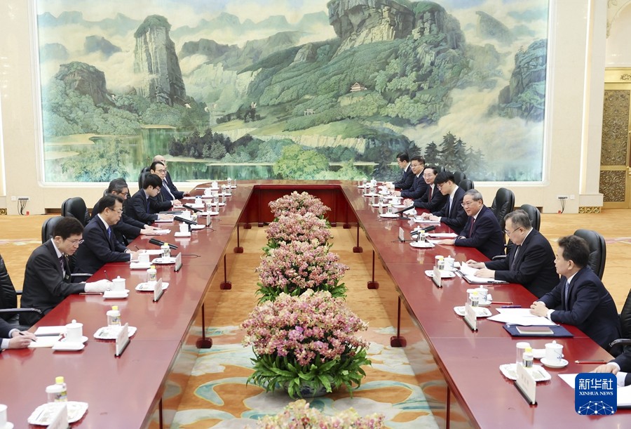 1月15日,中共中央政治局常委、国务院总理李强在北京人民大会堂会见由日本自民党干事长森山裕、公明…