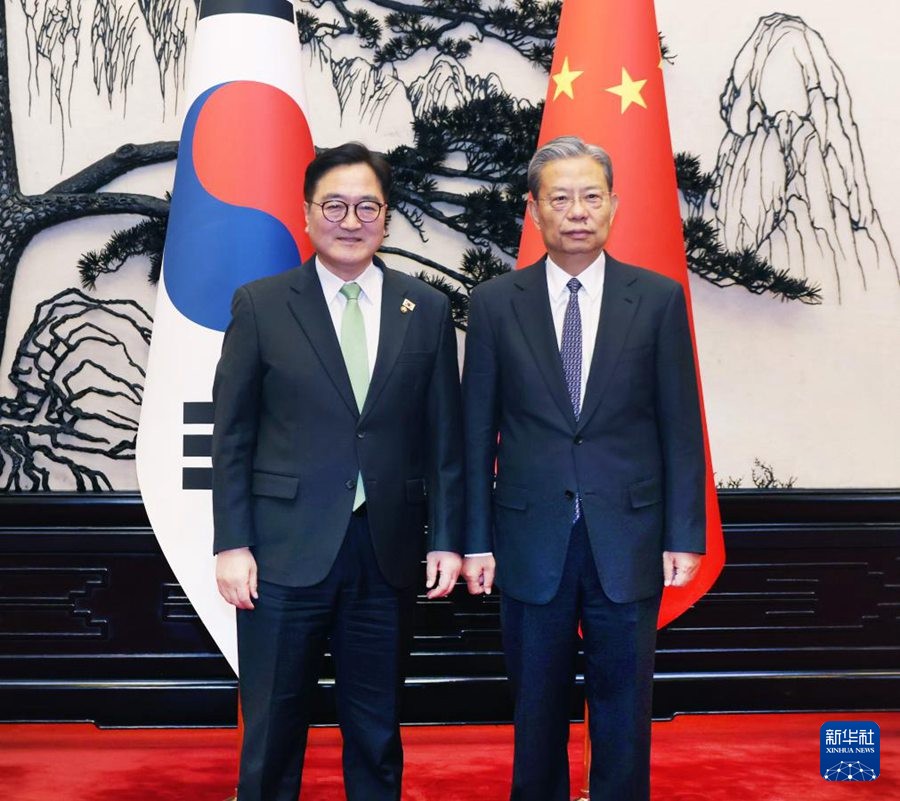 2月5日下午,全国人大常委会委员长赵乐际在北京人民大会堂同韩国国会议长禹元植举行会谈。新华社记者…
