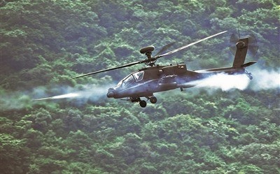 一架“阿帕奇”攻击直升机在空中开火据外媒报道,波兰近期获得美国30.8亿美元军事贷款,用于采购美…