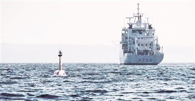 水面无人艇DriX(左)在一艘法国海洋调查船附近航行。据美国防务新闻网站报道,法国海军近日向法国…