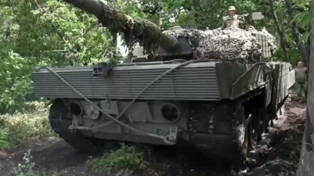 俄媒:一辆德制“豹2A4”主战坦克在顿涅茨克被摧毁,被击中后起火
