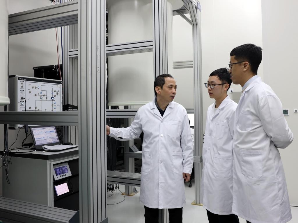 3月3日,中国科学技术大学教授、“祖冲之号”量子计算总师朱晓波(左一)与学生讨论实验结果。新华社…