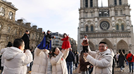 12月15日,在法国巴黎圣母院前,来自中国福建展演团的演员表演布袋木偶戏《巴黎圣母院》。中法美丽…