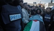 12月16日,人们在加沙地带中部城市代尔拜拉赫为遇难记者艾哈迈德·卢送葬。巴勒斯坦消息人士称,上…