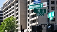 这张4月15日的视频截图显示,美国前总统特朗普抵达纽约曼哈顿一家刑事法院出庭。新华社记者丁晔摄新…
