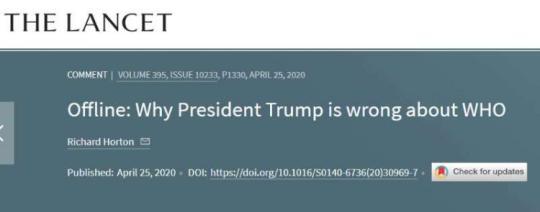 《柳叶刀》主编撰文:为什么特朗普总统关于WHO的说法是错的