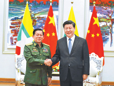 习近平会见缅甸国防军总司令敏昂莱