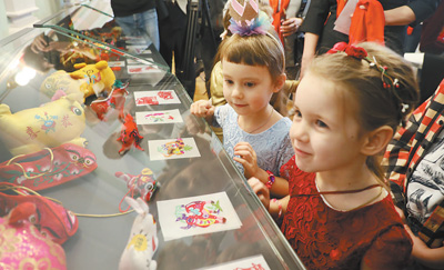 一月十八日,“欢乐春节”活动走进莫斯科五一村中共六大会址常设展览馆。图为俄罗斯小朋友正在观看中国…