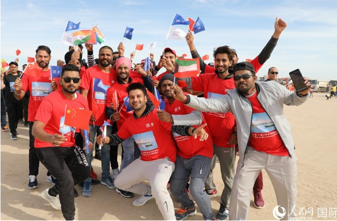 长跑活动开始前,参赛员工在场地上高兴地合影。人民网科威特城1月1日电(记者周輖、黄培昭)葛洲坝集…