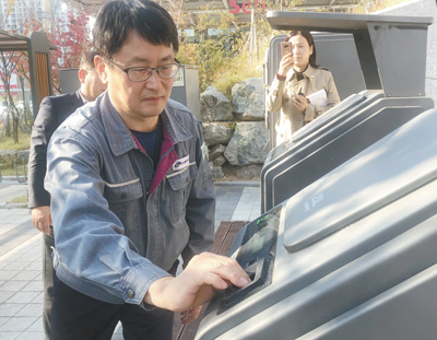 在世宗市的一家垃圾自动转运站,工作人员在演示垃圾自动收集系统。本报记者刘歌摄核心阅读韩国从199…