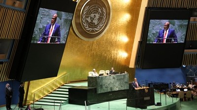 9月5日,在位于纽约的联合国总部,第78届联合国大会主席丹尼斯·弗朗西斯在新一届联大第一次全会上…