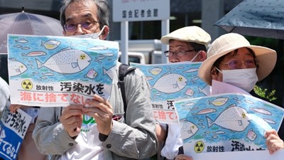 新华社东京7月17日电综述:反对排放核污染水日本民众在行动新华社记者17日是日本法定节假日“海之…