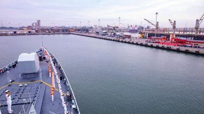 6月27日,中国海军第43批护航编队抵达加纳特马港码头。新华社发(吴亢慈摄)新华社加纳特马6月3…