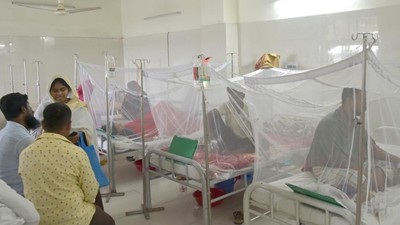 7月4日,在孟加拉国达卡一处医院,人们等待就医。近期,孟加拉国登革热病例数大增,7月的前三天新增…