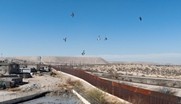 这是2月4日在墨西哥奇瓦瓦州华雷斯市航拍的墨美边境墙,墙的左侧是墨西哥。华雷斯是墨西哥奇瓦瓦州的…