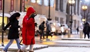 2月12日,行人走在美国芝加哥市中心积雪的道路上。芝加哥当日遭遇冬季风暴,降雪过后气温大幅下降。…