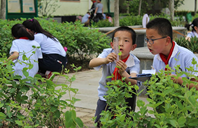 五一小学学生在该校“百草园”里劳动。韦豹/摄五一小学学生的版画作品展览。韦豹/摄五一小学女足队正…