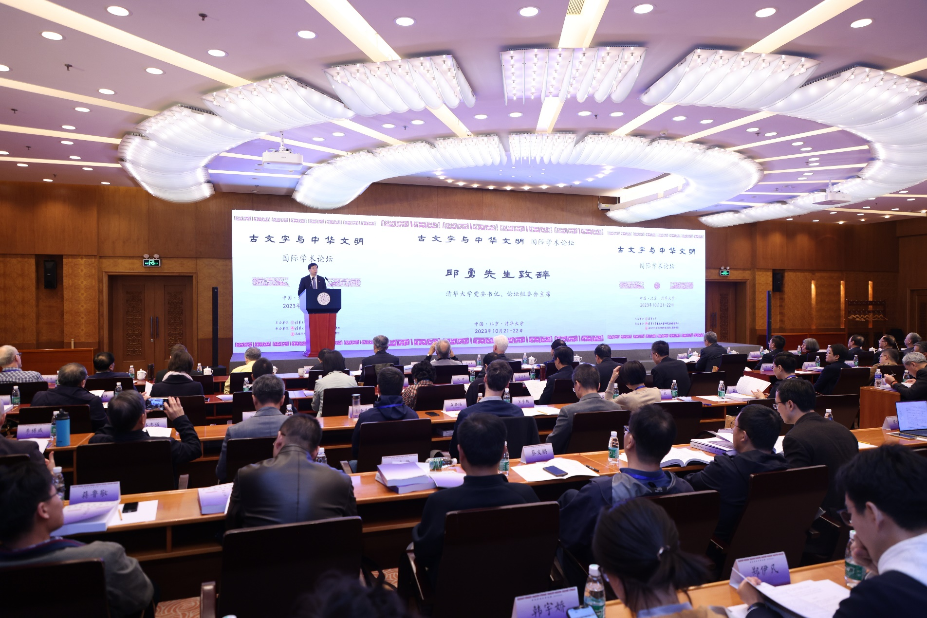 近日,首届“古文字与中华文明”国际学术论坛在清华大学主楼接待厅开幕。清华大学党委书记邱勇,全国哲…