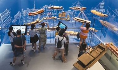 随着暑假来临,江苏扬州中国大运河博物馆内客流量明显增多。陈亮摄(人民图片)游客在海南省琼海市石壁…