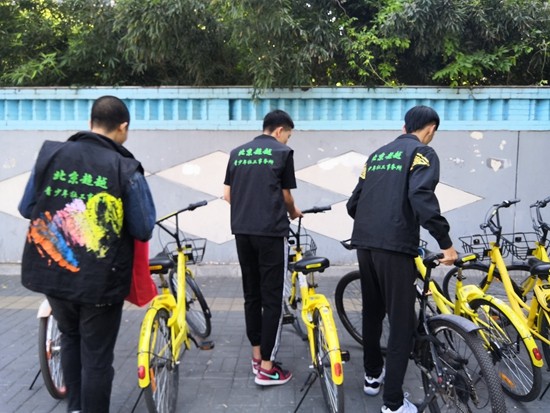 罪错少年参与实践探索项目“城市历奇”,徒步沿路整理共享单车。受访者供图李涵与一位未成年被害人谈心…