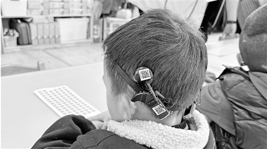 七彩梦幼儿园小朋友的“小耳朵”上有了防丢二维码再次听到声音的文文对着帮忙的叔叔阿姨比“心”听障人…