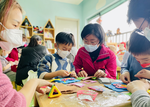 2月28日下午的“彩虹湾病房学校”课堂,教师志愿者带孩子们做手工。上海市儿童医院供图在上海市儿童…