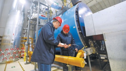 北京热力各项供热设备设施检修技改工作已进入冲刺阶段,图为工作人员检查嘉多丽园小区锅炉房设备。记者…