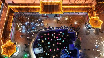 12月18日晚,观众游览正定县荣国府影视基地(无人机照片)。近年来,河北省石家庄市正定县全力打造…