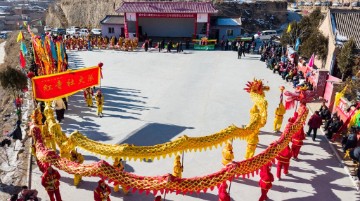 2024年12月31日,兰州市榆中县小康营乡红寺村社火队在村文化广场上排练社火节目(无人机照片)…
