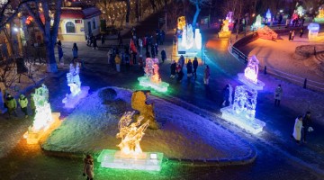 1月2日,在哈尔滨市兆麟公园,游客在冰灯艺术游园会园区内观赏冰灯(无人机照片)。近期,“冰城”哈…
